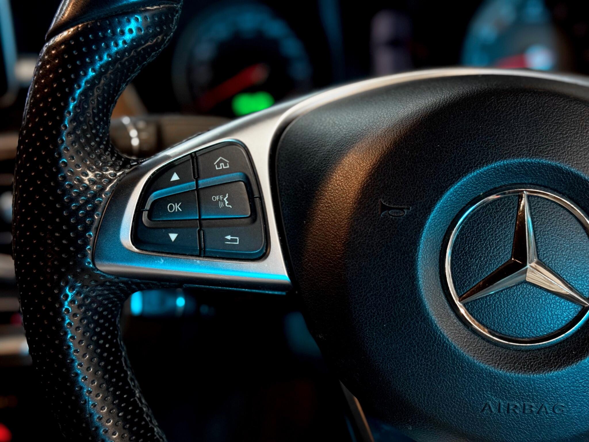 - Steering Wheel - 3-Spoke Multi-Function AMG in Leather with Flattened Bottom Section - Chrome Inserts and Perforated Leather in Grip Area